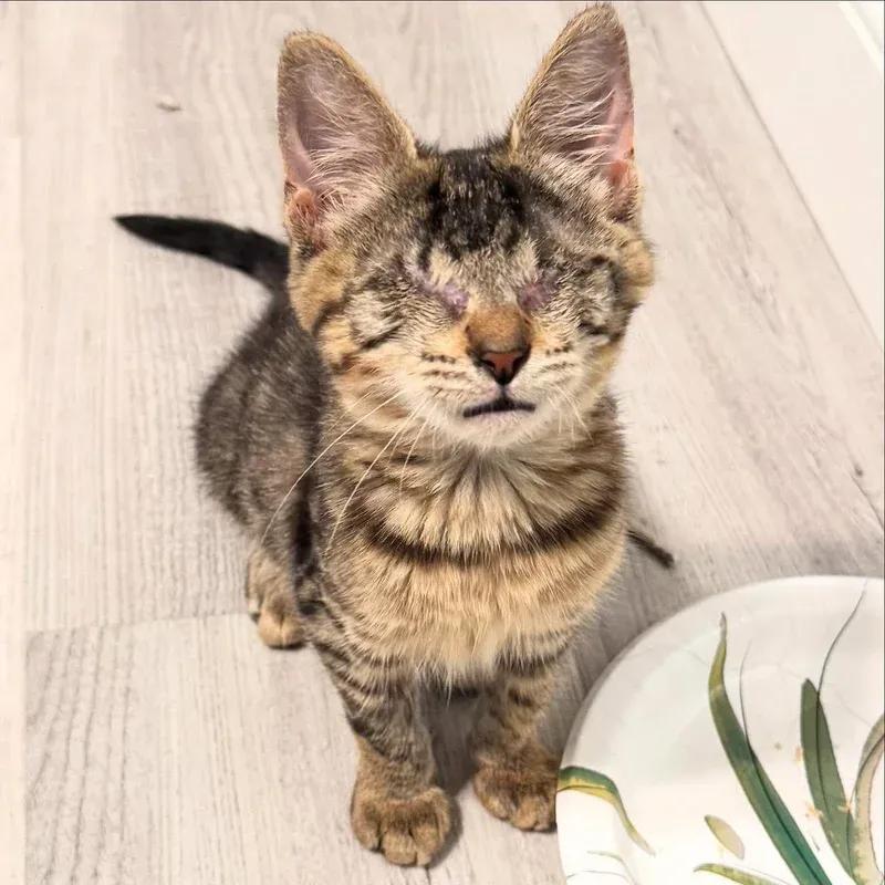 这只小猫的眼睛感染非常严重,已经无法挽救。